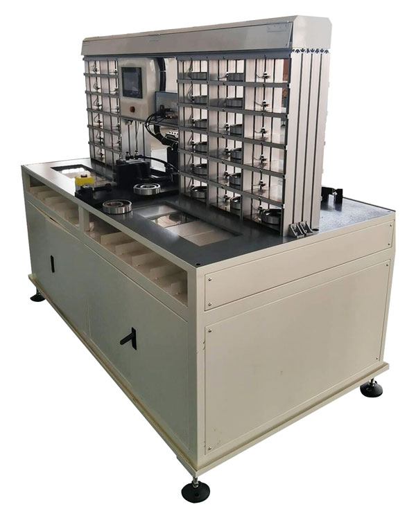 軸承裝配設備系列設備概述 MM-DHTJ-04 型半自動測量分選合套機主要用于大型深溝球軸承的配圈選球合套等組裝工序,設備結構簡單,調整方便,高效穩定,是取代手工裝配的選擇! 功能描述 1、內/外圈人工放入測量工位. 2、內/外圈自動測量, KEYENCE測量儀器, 儀器精度: 0.1m, 重復測量誤差: ±1m. 3、根據觸摸屏設定的游隙值﹐計算選取鋼球,鋼球庫自動打開對應型號的鋼球,避免裝錯球。 4、鋼球組數7組, 鋼球尺寸觸摸屏可設定. 5、人工取球合套 設備圖片 標準配置 控制系統 歐姆龍 測量儀器 基恩仕 氣動元件 亞德克 輸送電機 臺邦 觸摸屏 信捷 各類開關 黃山 技術參數 型號范圍 MM-DHTJ-03 外徑:70-100 mm MM-DHTJ-04 外徑:100-160 mm 進料高度 850±50 mm (注: 機腳到上料皮帶高度) 電壓頻率 220V / 單相 / 50HZ 氣源壓力 0.4~0.6 Mpa (注:進氣源需冷凍干燥處理) 體積/重量 加工精度 使用環境及對零部件要求 溫度:28℃左右 濕度:70% 套圈散差:5um以內 清潔度:符合國標要求 |